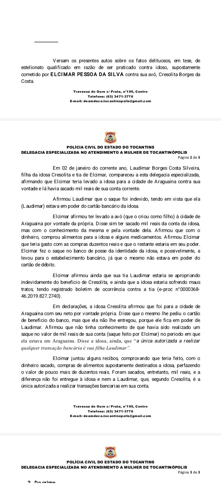 Em outro episódio, mais sensível ainda, surge um inquérito policial que aponta indícios de estelionato contra idoso. E não qualquer idoso: a própria avó.